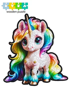 Деревянный пазл для детей и взрослых Радужный единорожка