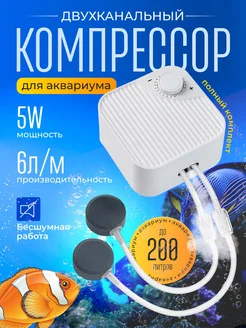 Компрессор для аквариума двухканальный бесшумный 50 100 200л