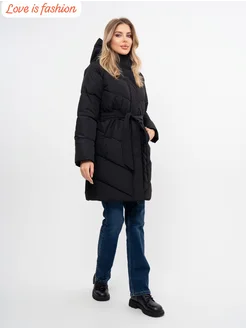 зимняя пуховик с капюшоном удлиненная