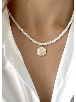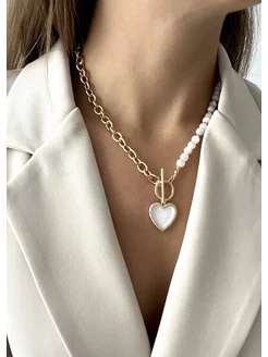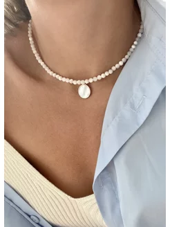 Колье цепь с натуральным перламутром.Цепь на шею