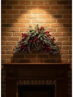 Рождественская ветка заснеженная с ягодами и веточками 60 см