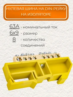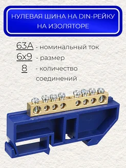 Шина нулевая на дин рейку 6х9 мм 8 отверстий 63А 1шт