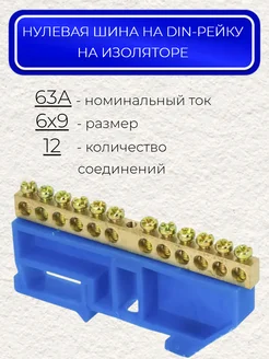 Шина нулевая на дин рейку 6х9 мм 12 отверстий 63А 1шт