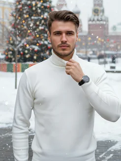 Теплый белый свитер с высоким горлом шерстяной