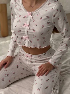 Пижама со штанами с цветочками