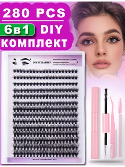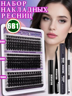 Накладные ресницы 6в1 30D 40D пучки 240 с клеем изгиб D