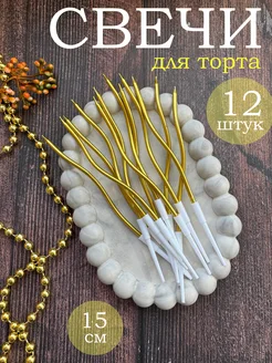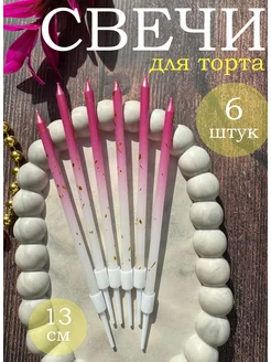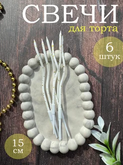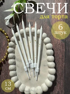 Свечи для торта 6 шт красно-белые с золотом прямые