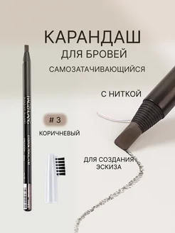 Карандаш для бровей коричневый самозатачивающийся с ниткой