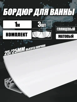 Бордюр для ванны с комлектующими, белый матовый, 1м - 3 шт