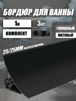 Бордюр для ванны с комлектующими, черный матовый, 1м - 3 шт