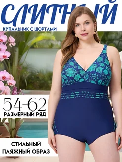 Купальник слитный с шортами большие размеры