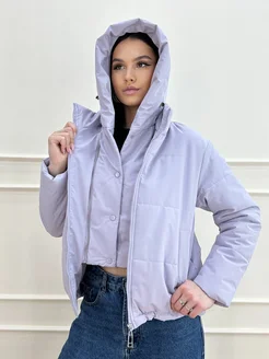 Ультратонкая демисезонная куртка укороченная с капюшоном