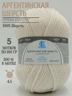 Пряжа Аргентинская шерсть, 205-белый (5 мот)