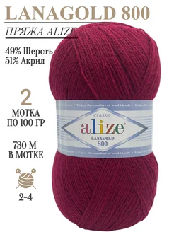 Пряжа Lanagold 800 390-вишня (2 мотка)
