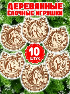 Деревянные елочные игрушки новогодние Подковы с пожеланием