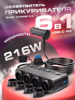 Автомобильный разветвитель на 4 розетки + USB Type-C PD