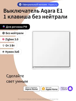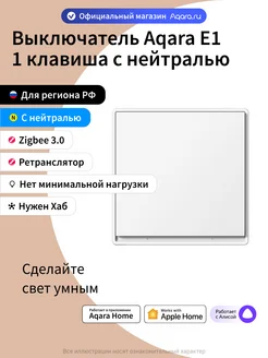 Умный выключатель E1 QBKG38LM, 1 клавиша, без нейтрали