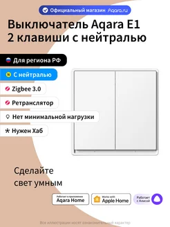 Умный выключатель E1 QBKG41LM, 2 клавиши, с нейтралью