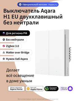 Умный выключатель H1 WS-EUK02, 2 клавиши, без нейтрали
