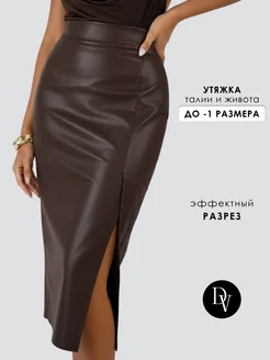 Юбка кожаная карандаш длинная пушап c разрезoм сзади