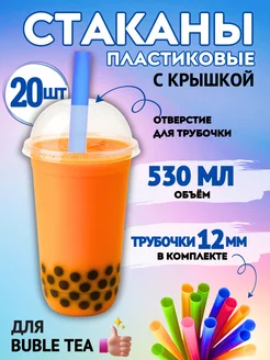 Одноразовые стаканы с крышкой и трубочкой баблти 20*530мл