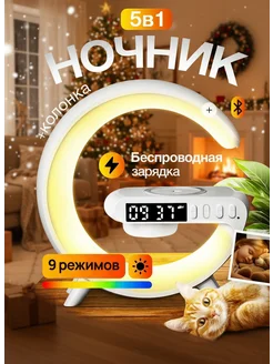 Светильник колонка с беспроводной зарядкой ночник настольный