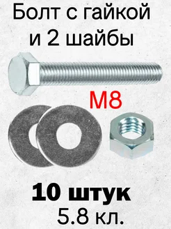 Болт М8х120 с гайкой и шайбой комплект 10 шт