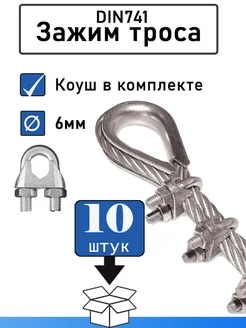 Зажим для троса 6 мм DIN 741 10 штук + коуш