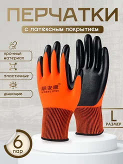 Перчатки рабочие с обливом мужские строительные 6 пар