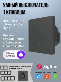 Умный выключатель ZigBee 1 клавиша для Алисы