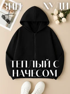 Худи зипка оверсайз с капюшоном с начесом теплая