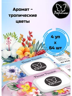 Влажные салфетки,4 упаковки по 64 штуки,цветы