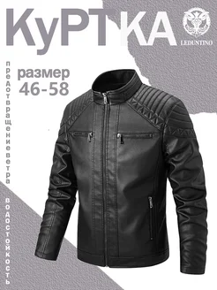 Мужская зимняя утепленная кожаная куртка с карманами ветроне…
