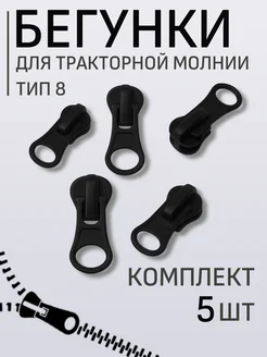 Бегунок к молнии трактоной Т8, черный, 5 штук