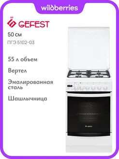 Плита газовая с электродуховкой 55 л, 50 см, ПГЭ 5102-03