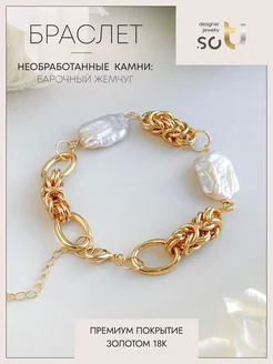 Браслет цепочка с барочным жемчугом