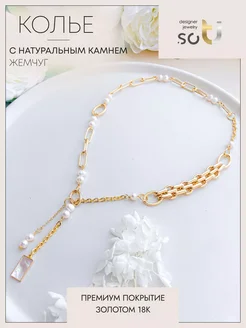 Колье цепь на шею с натуральными камнями