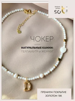 Чокер на шею из перламутра и жемчуга ожерелье с буквой Д