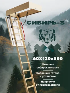 Чердачная лестница Сибирь-10 60х120х280 деревянная с люком