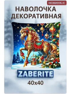 Наволочка декоративная 40х40 Золотой новогодний конь велюр