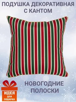 Подушка декоративная с кантом 40х40 Новогодние полоски велюр