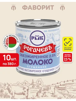 Молоко обезжиренное сгущенное с сахаром 2,5% 380 г, 10 шт
