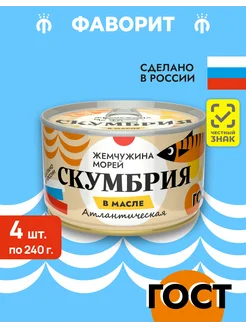 Скумбрия атлантическая в масле ГОСТ 240 г, 4 шт