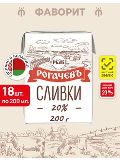 Сливки питьевые стерилизованные 20% 200 г, 18 шт
