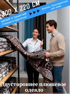Пушистое двухслойное плюшевое одеяло 200х220см