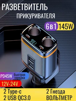 Автомобильный разветвитель прикуривателя 2usb 2type c