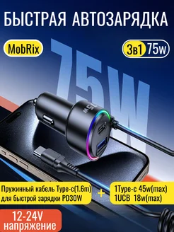 Автомобильная зарядка для телефона Type-C + USB-A + кабель