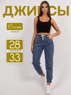 Джинсы женские с высокой посадкой бананы на резинке