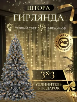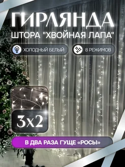Новогодняя гирлянда штора на окно занавес 3х2 хвойная лапа