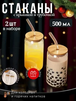 стаканы с трубочкой и крышкой набор для смузи 500мл